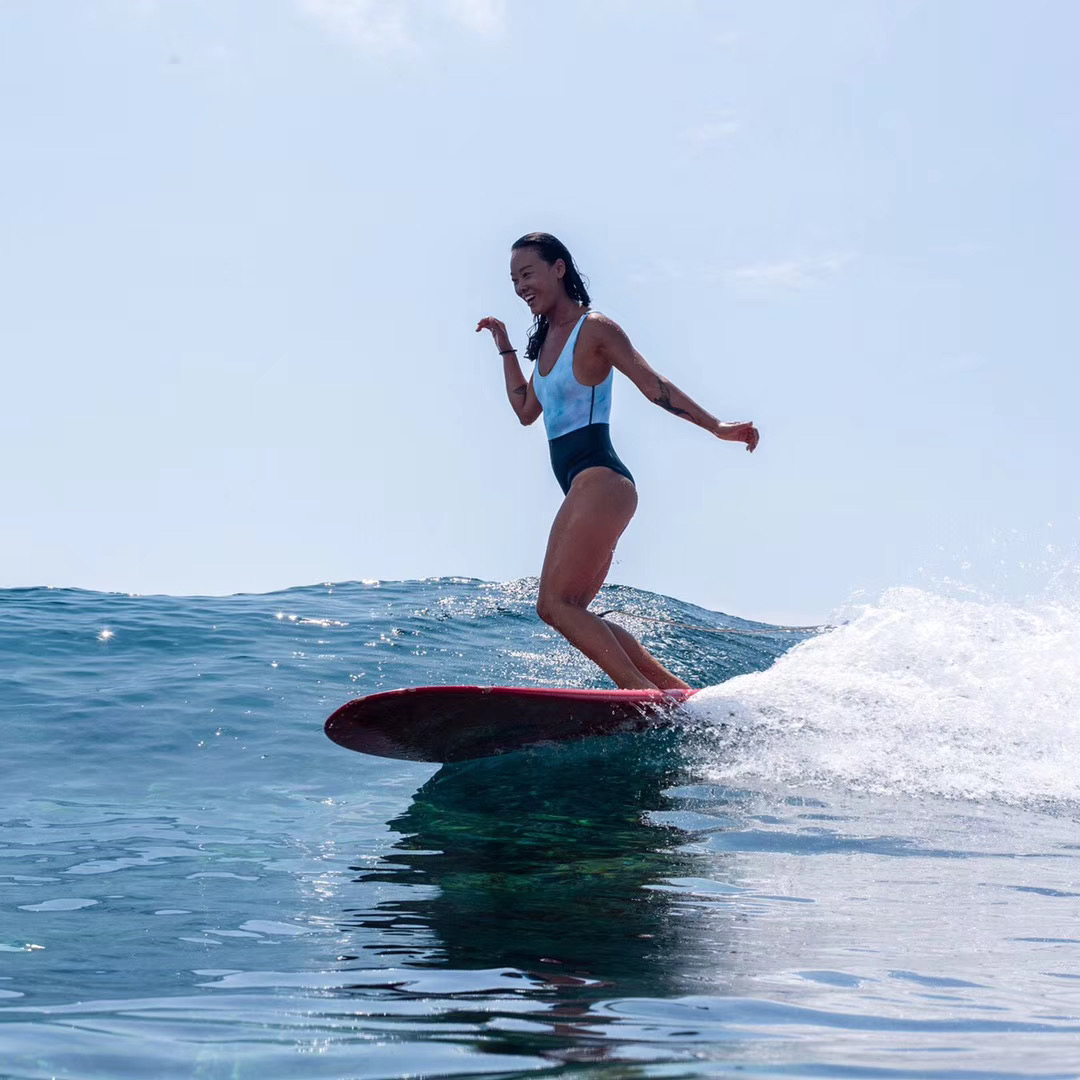 冲浪让她认识到了更好的自己,冲浪时大海就是她的老师,可以变得凶猛严厉的给她教训,也可以温柔体贴的跟她讲道理。