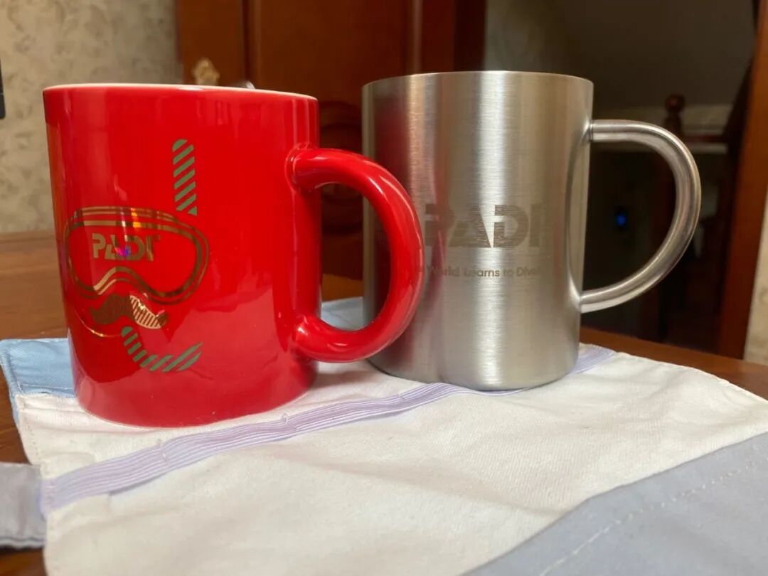 陪你一起打卡无数潜点的经典 PADI logoT恤;在潜水展看到的复古棒球帽,玛卡龙色棒球帽,PADI logo渔夫帽…忍不住收了一顶又一顶;办公室里备着的环保餐具、手绘鲸鱼咖啡杯、原创马克;还有好不容易抢到的PADI×三良分子浴袍、速干毛巾;在不潜水的日子里治愈我的manta、座头鲸、潜水气瓶公仔……