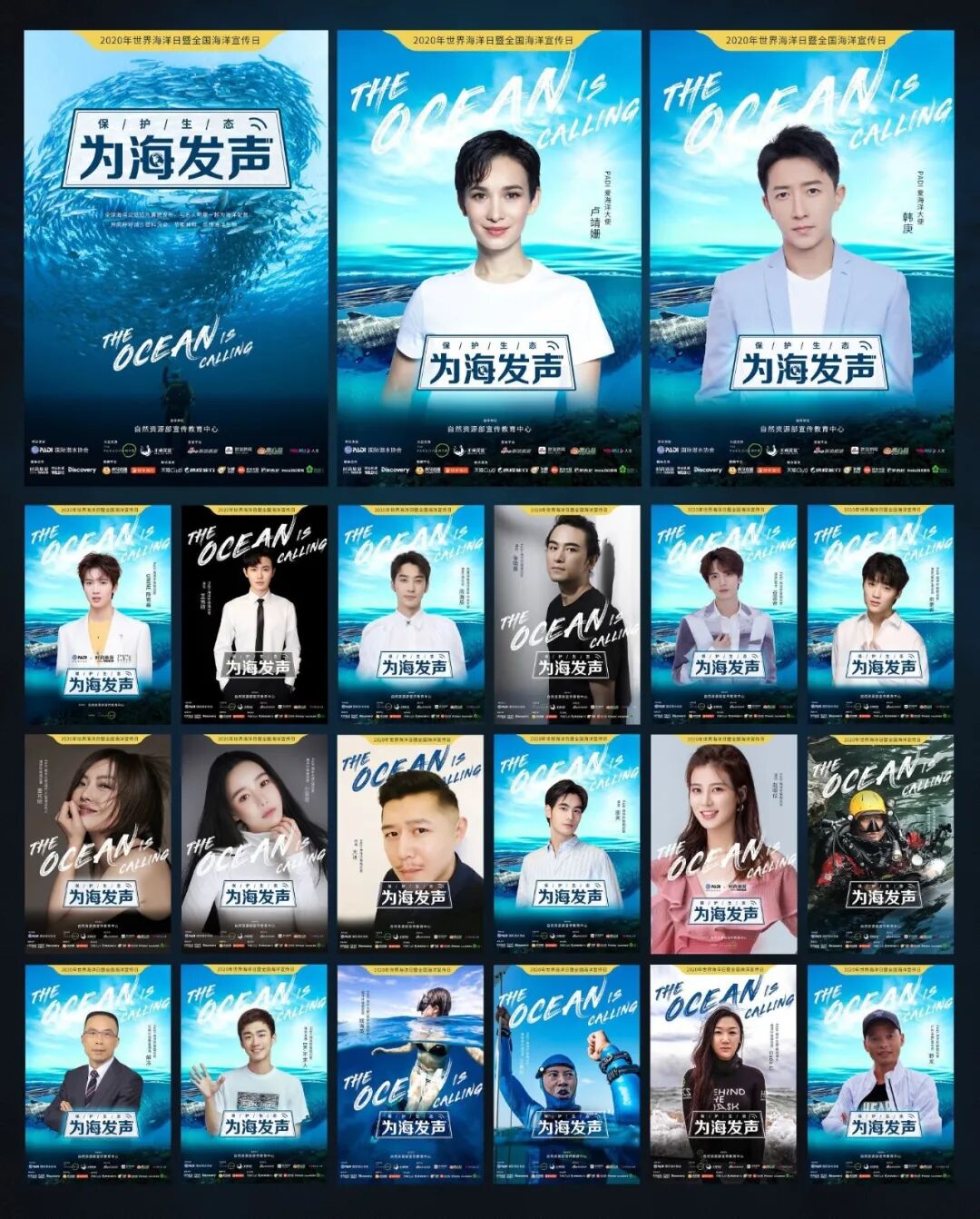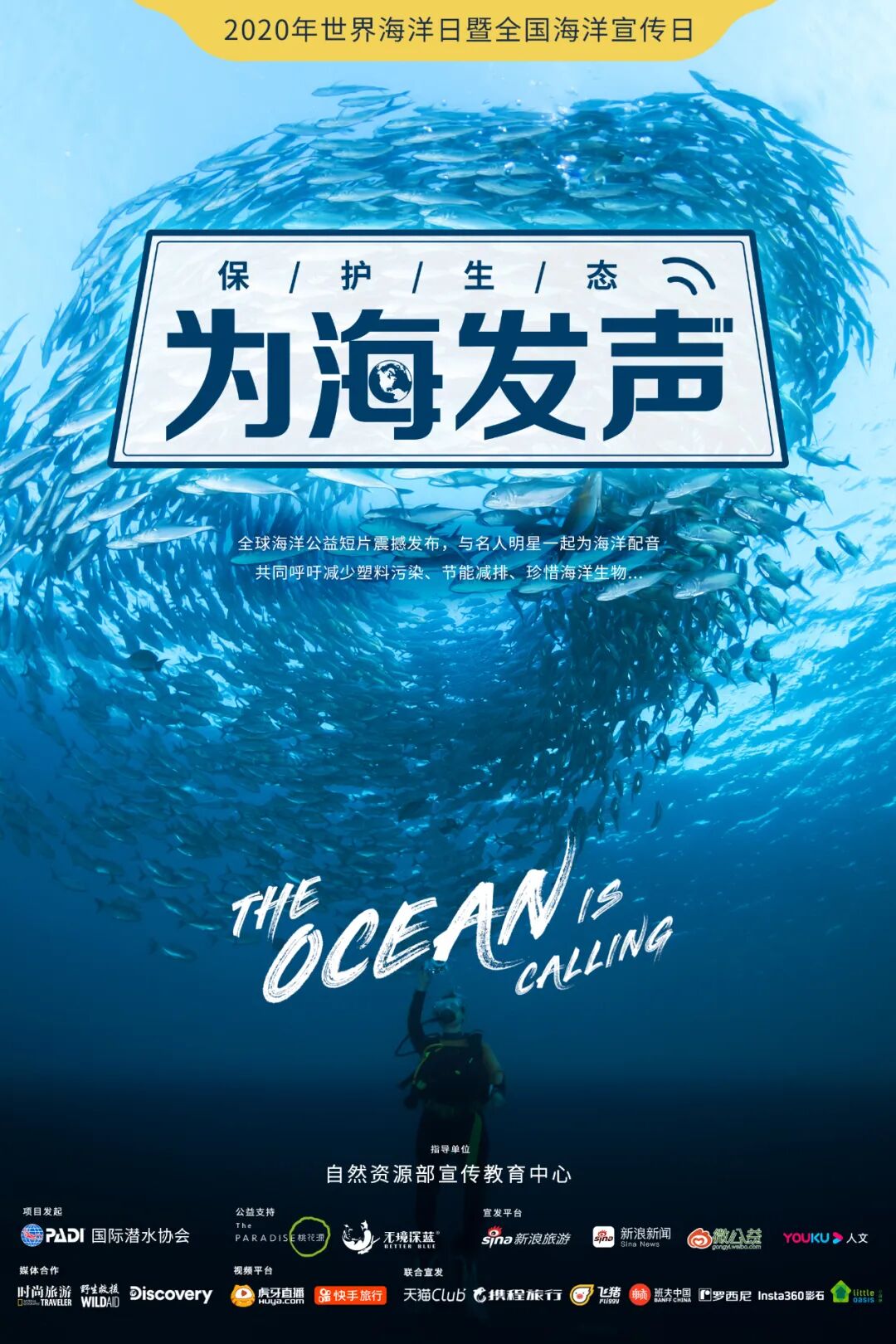 世界海洋日,PADI发布了《The Ocean is Calling》全球海洋公益片,由 PADI 爱海洋大使卢靖姗、韩庚领衔配音; PADI 潜水大使:唱作人/双语主持人查可欣、探险家小芸豆、班夫中国创始人钱海英、旅游博主Dada LiPADI 海洋环保倡议官:演员王佑硕、演员张晓晨、作家大冰、演员邵天、演员/歌手谷蓝帝、演员/歌手俞更寅、影视编剧/潜水员刘毅、万科公益基金理事解冻、电竞主播DK-不求人、自由潜水运动员王奥林、户外主播/潜水员野龙;无境深蓝海洋青年公益大使/演员/潜水员庞瀚辰;歌手黄雅莉、演员/歌手陈宥维、演员赵昭仪等各领域影响力人物为公益片个性化配音和倡议海洋环保,并在社交媒体上发起网友配音互动的活动。