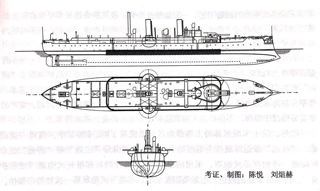 “经远”级军舰装甲防护部位(图中黑色带状及黑色粗线部位)