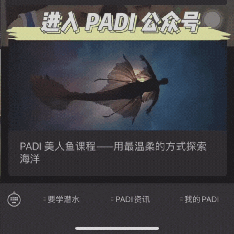 进入 PADI 公众号,点击:我的PADI-寻找潜店,在搜索选项中勾选“美人鱼”