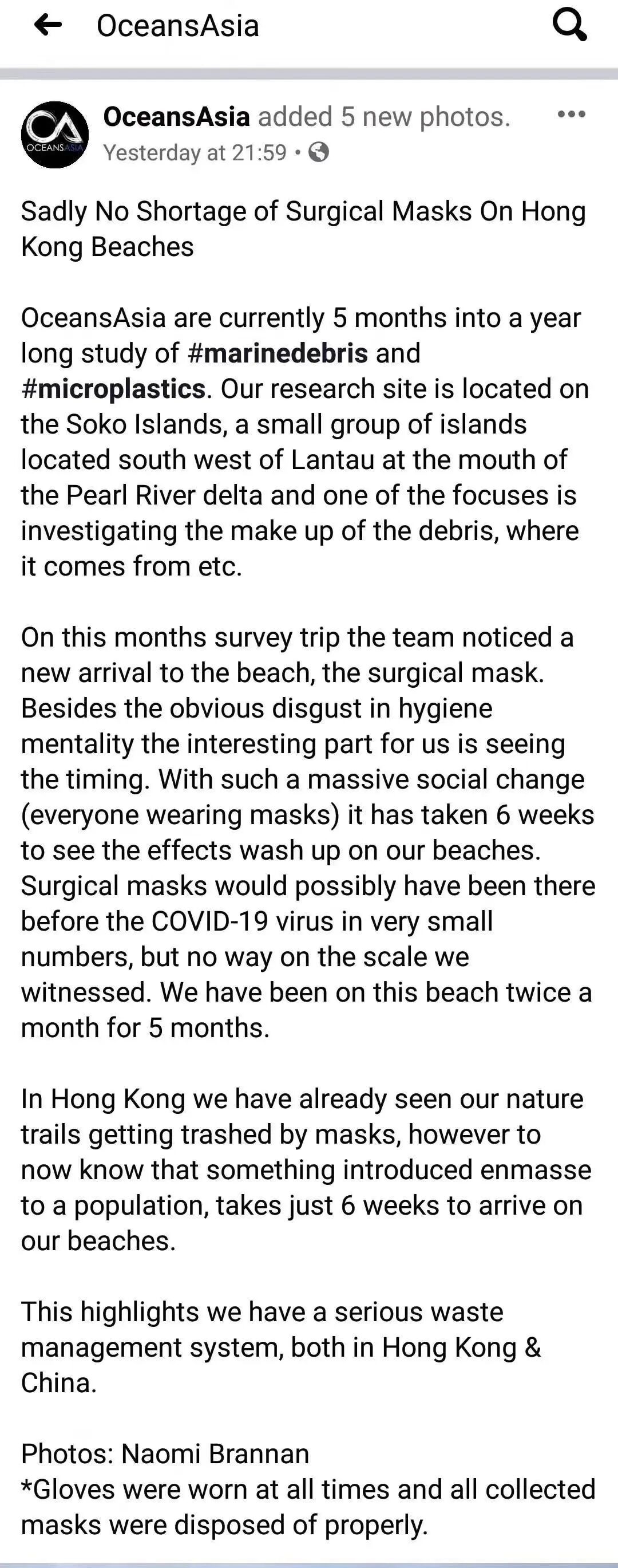 居住香港30年,从事海洋研究工作15年的Gary,发现在这里,每100米便能够拾取到至少70个口罩!