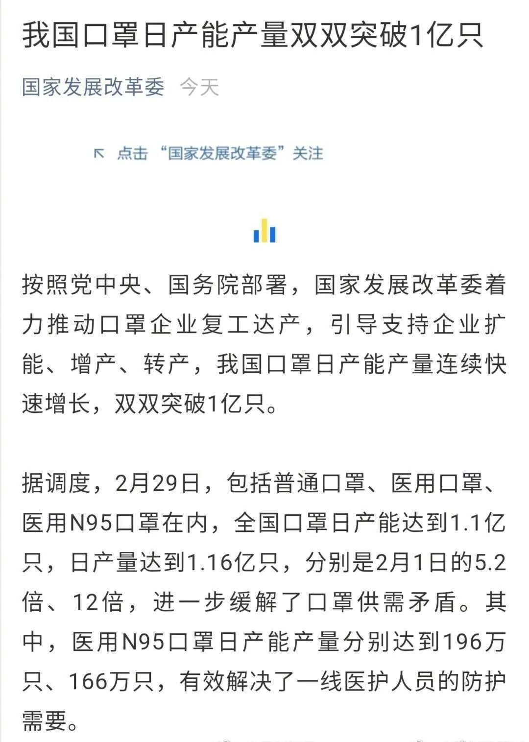 口罩日产能产量得到了极大的增长,解了咱们的燃眉之急。