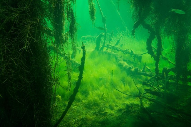 Under the water you can meet Chinese carp, Wild carp, an eel, a tench, pikes, perches, the Californian crawfish and even “shaggy” crabs. You may see a light railway going to the depth, a wood, a hogbacked and hilly bottom, various building constructions and, certainly, amber …
