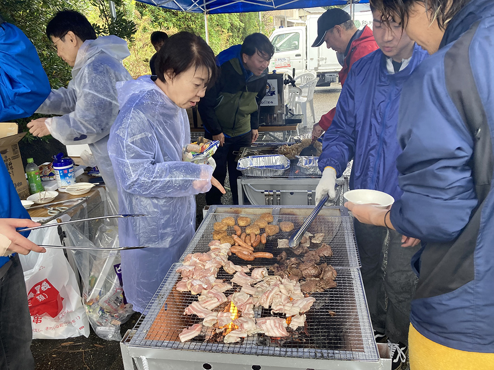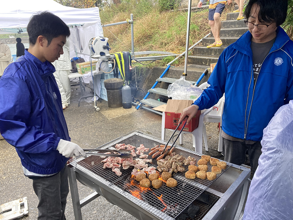 水中清掃は午前中で無事終了。昼食には、ライオンズクラブの皆さんがご準備された肉や野菜のBBQが振る舞われ、参加者同士が労をねぎらい合う和やかな時間となりました。