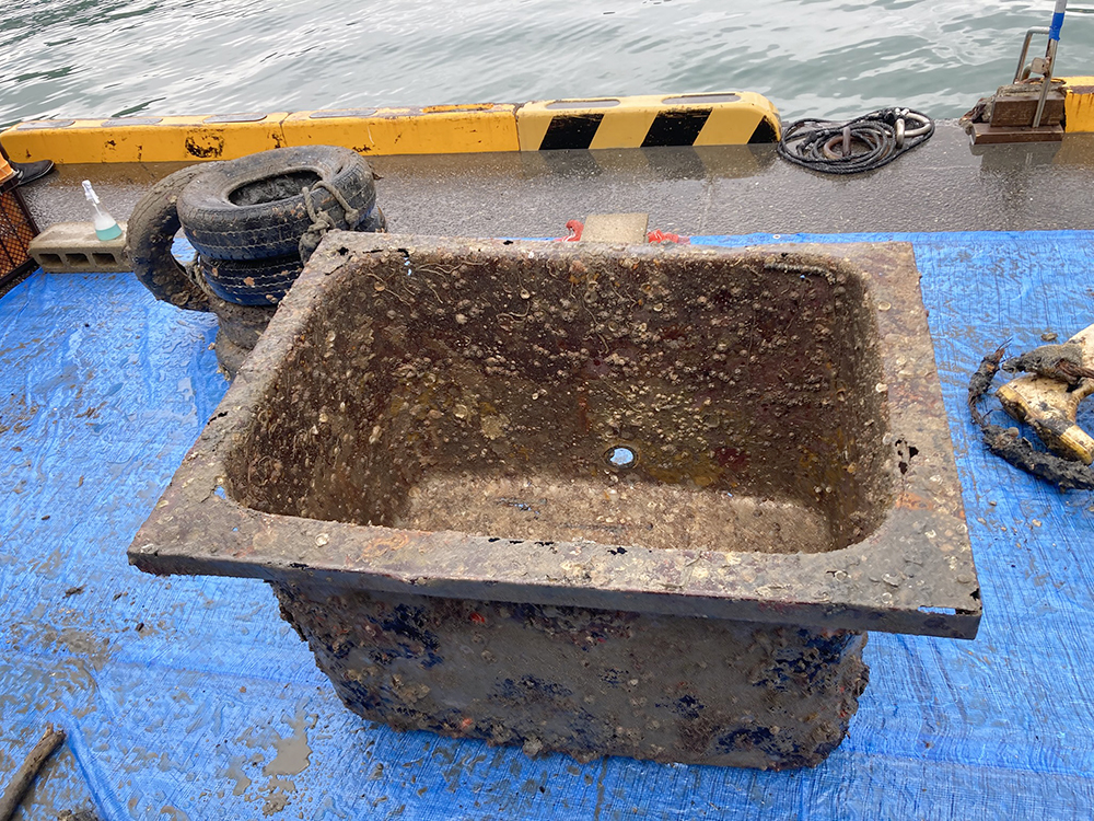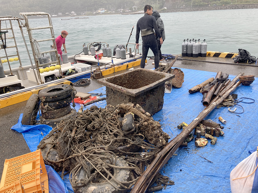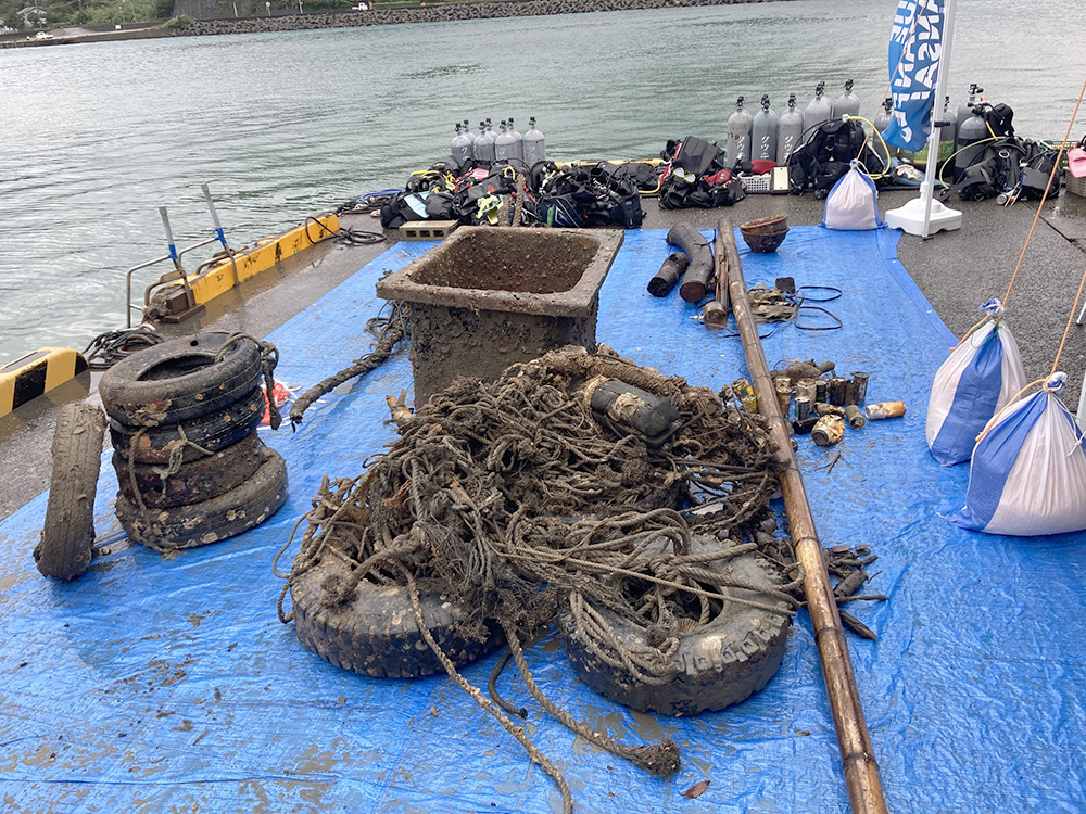 阿吽(あうん)の呼吸で作業は進み、この日回収された水中ごみは総重量370キロに達しました。