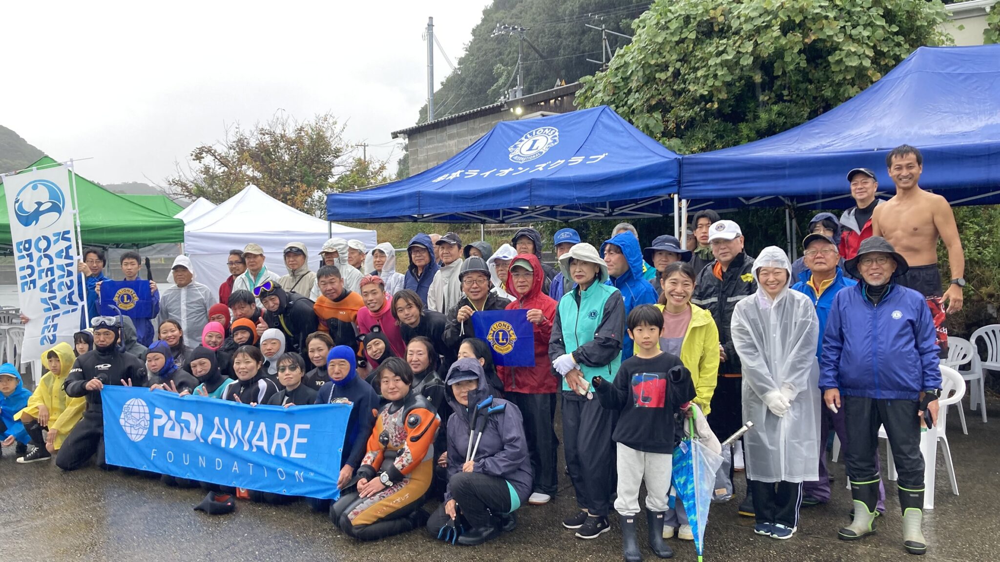中心となったのは串本ライオンズクラブ(小森 正剛会長)。地元ダイビングショップ「バブルリングダイバーズ」の協力のもと、和歌山県内の各ライオンズクラブ、ダイバーや地域関係者など約60名が集結しました。まさに一致団結の取り組みです。