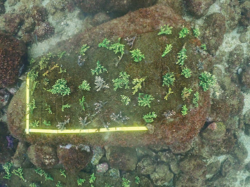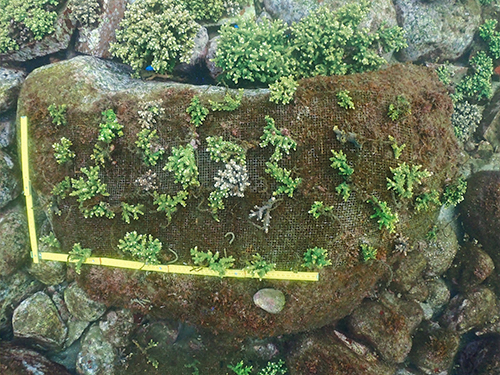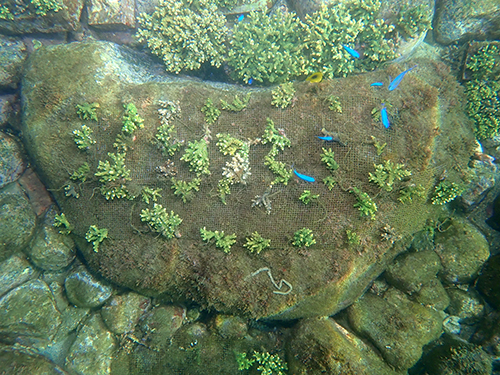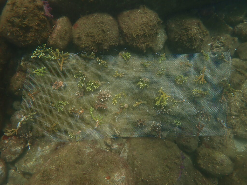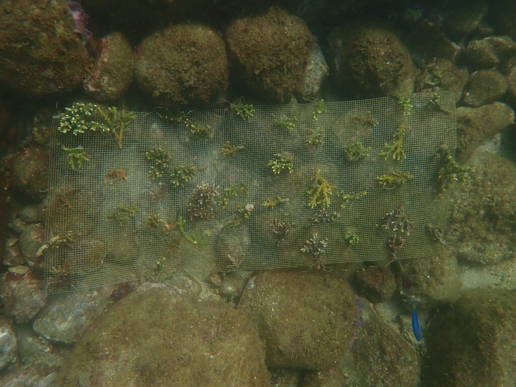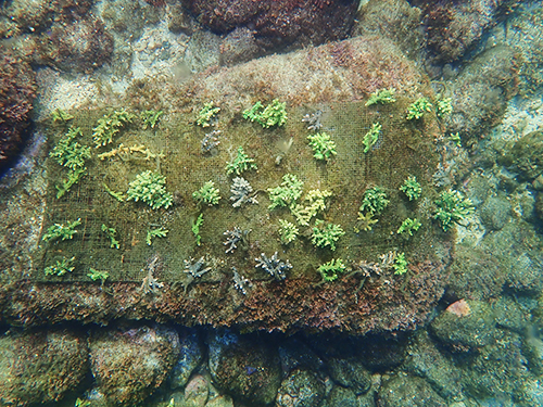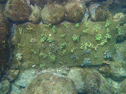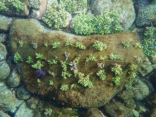 イベントで皆さんにご協力いただいたサンゴを水底へ移設。