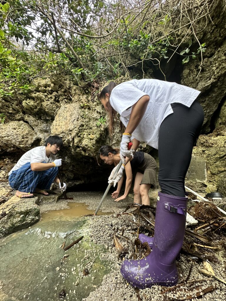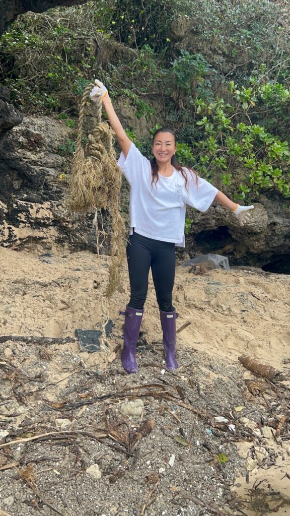 そして、周りの仲間達と海を潜りながらゴミを取り除いていったり、珊瑚に絡まった釣り糸を解いていったり、地域の方達と協力しあってビーチクリーンを定期的に行っています。みんなで海に感謝しながら宝物を探すみたいにゴミを拾うのはとても楽しい時間です。