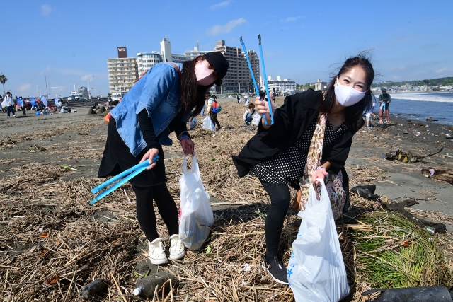 片瀬海岸でのNPO法人海さくらのごみ拾いは15時からスタートだったため、開始時間には雨も止み、ギリギリでしたが実施することができました。