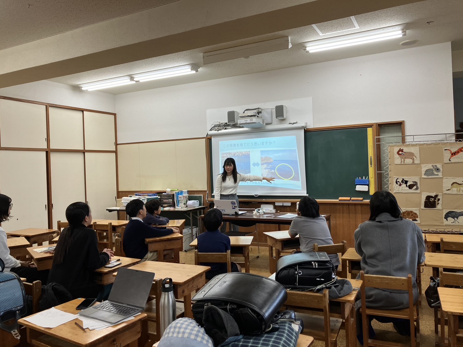 SNSを使って、サンゴの白化やプラスチックごみ、藻場の減少について発信したり、小学校に出向いて、海の大切さを伝えるワークショップを開いたりしています。とくに子どもたちに伝えるときは、できるだけ楽しく、でもちゃんと本質が伝わるように工夫します。紙芝居やカードゲームを使って、「海ってすごい」「だから守りたい」って思ってもらえるように想いを込めて伝えています。今すぐ何かを変えられるものではないかもしれないけど、それでも「知ること」や「感じること」は、未来を変えるための第一歩だと思っています。
