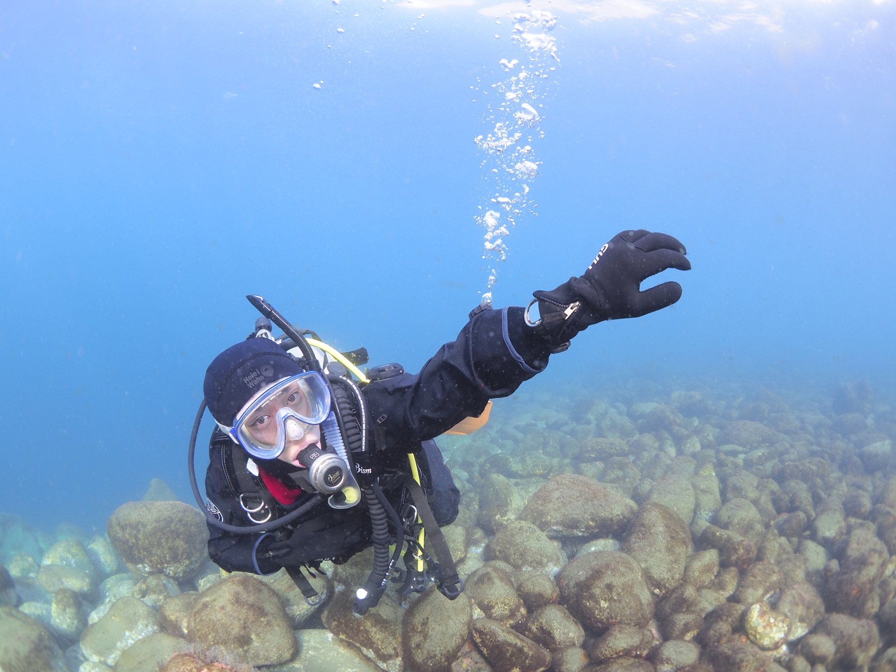 初めてドライスーツで潜る場合は、徐々に慣れていける季節やエリアやを選びましょう。特に秋は、ドライスーツデビューにおすすめの季節です。水温がまだ極端に低くなく、インナーも薄めで済むため、浮力の変化が小さく、動きやすい状態で練習できます。快適さと実践的な感覚を両立できる時期なので、初めてのドライスーツに慣れるにはぴったりです。