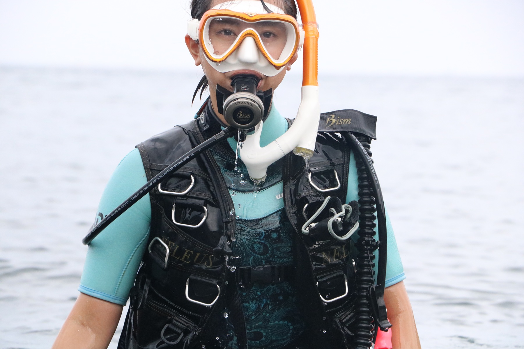 レンタル器材は毎回使用するメーカーやセッティングの状態が異なり、ホースの取り回しや残圧計の位置、吸い心地や口当たりなどに微妙な違いがあります。そのたびに慣れ直す必要があり、最初の1本目で「なんだか落ち着かない」と感じることも。初心者は、緊張感につながることもあるでしょう。