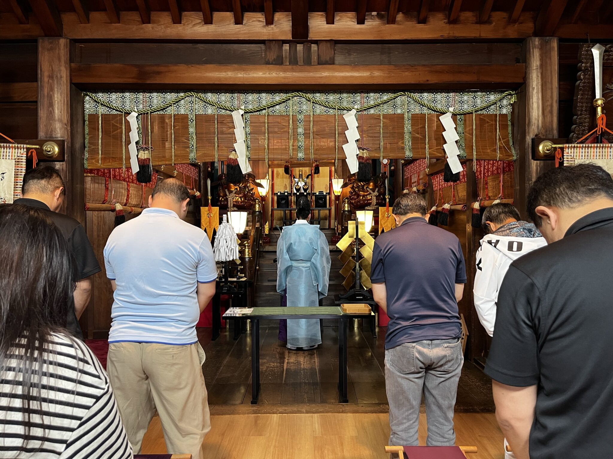 この日は、「海上安全」「安全潜水」「好天 凪(なぎ)」が祈願され、社殿では祝詞の奏上の後、代表としてCカード協議会会長 伊東による玉串奉奠(たまぐしほうてん)が行われました。