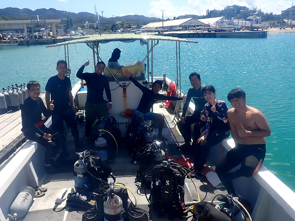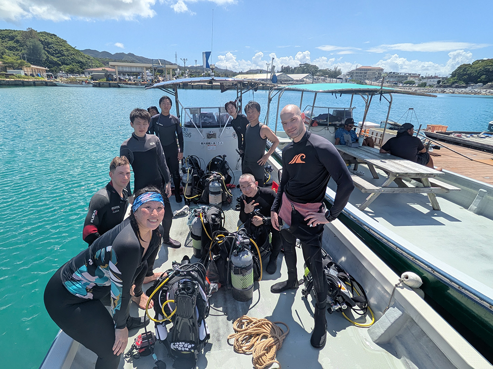 10月を目前にした沖縄は、まるで真夏の再来。青天白日の空の下、気温33℃、水温28℃と南国らしい陽気に恵まれ、東風の穏やかなコンディション。海況も安定し、まさに順風満帆といえる一日でした。