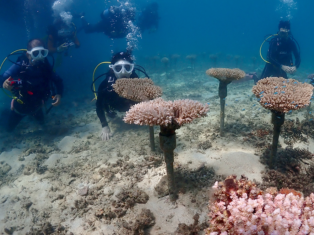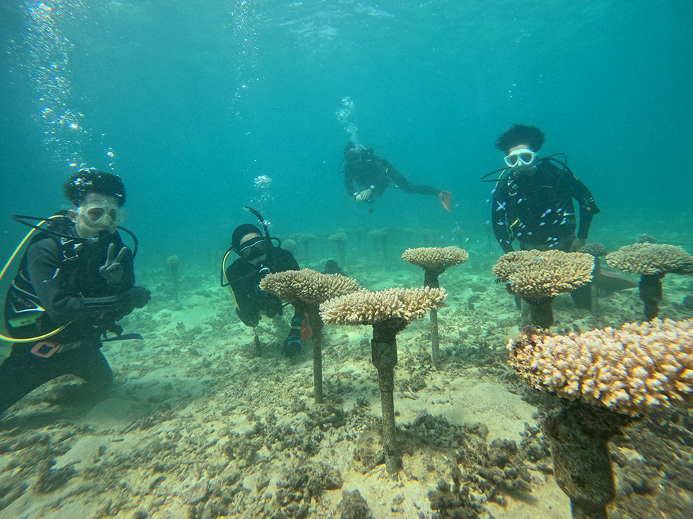 ダイバー・プログラムでは19本のサンゴ苗を植え付けし、ノンダイバー・プログラムでは20本の苗作りを実施