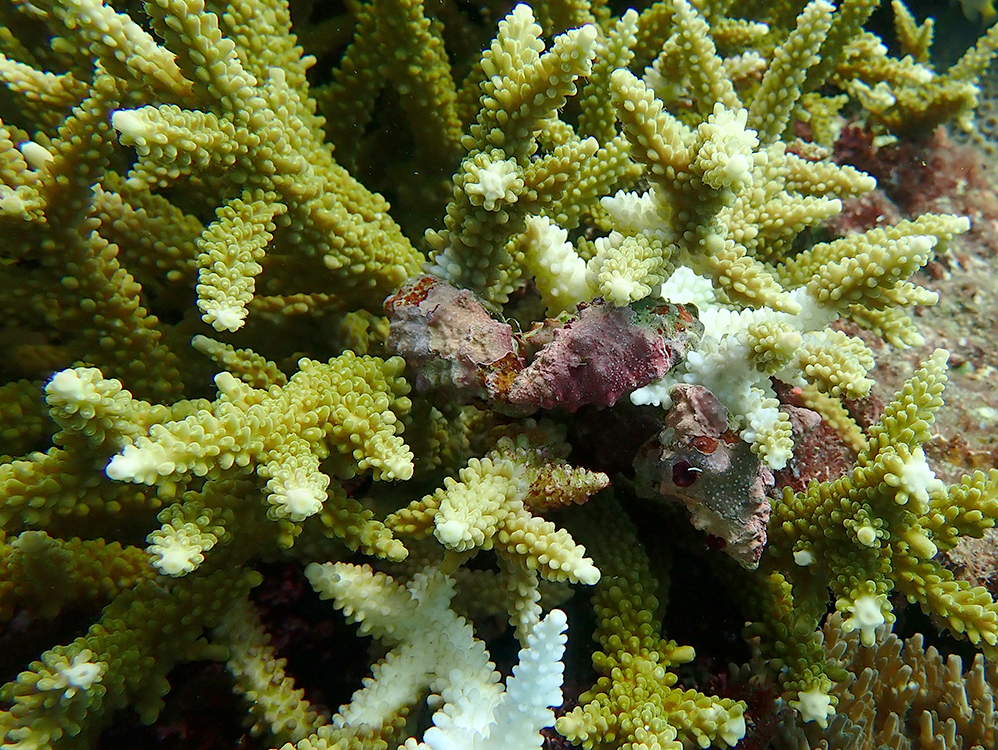 ダイバー・プログラムでは、この万座コーラルの水深8mのところに一人一本ずつ、計19本のサンゴ苗を植え付けました。