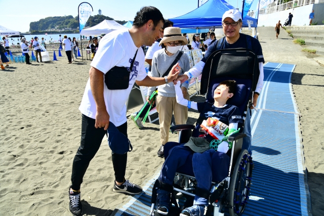 身体に不自由のある方もない方も、国籍・性別問わず、地球人かどうかも関わらず、子どもも大人も垣根を越え、同じ砂浜で笑い合う――まさに共生の原風景が広がりました。