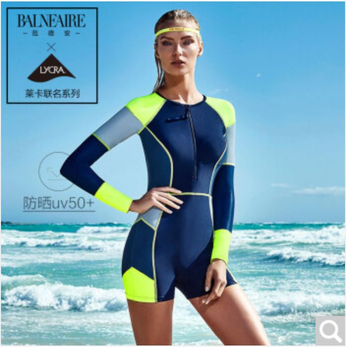 範德安連體泳衣女 長袖防曬拼接泳裝